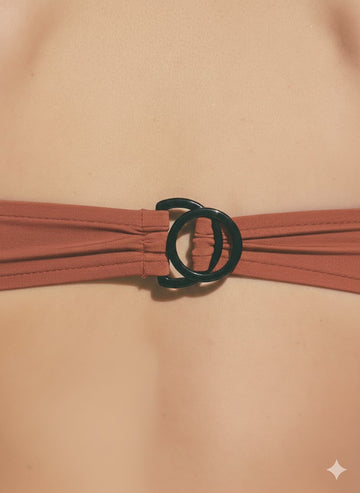 "Échancrure dos vertigineuse, top blousant, le premier maillot de bain devenu un classique. Élégance et audace à chaque détail."