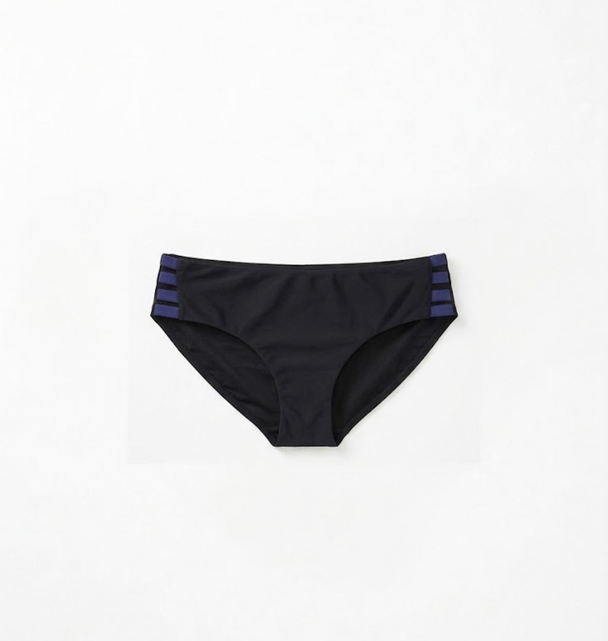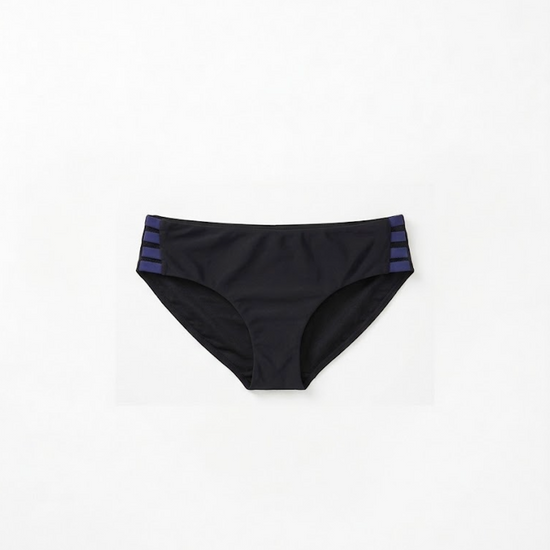 – Le slip noué contrasté marine, délicat et ajustable, qui souligne la silhouette avec subtilité.